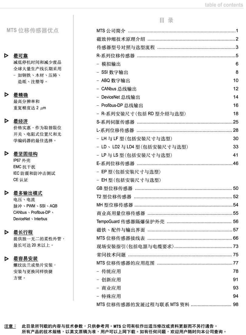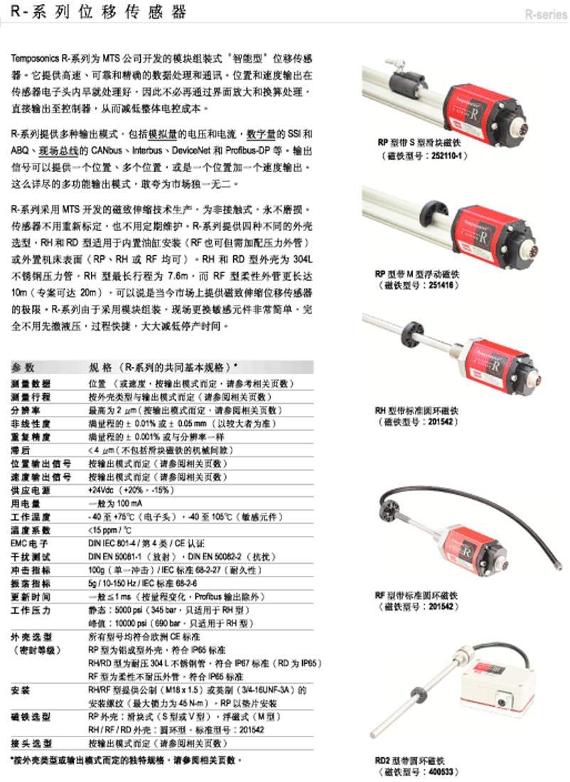 美国MTS系统公司——Temposonice磁致伸缩位移传感器